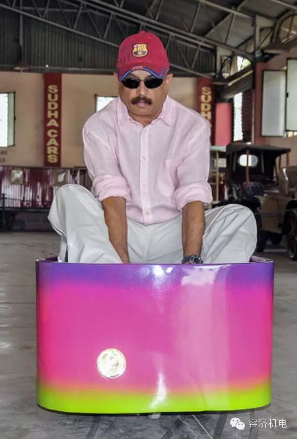 印度汽车设计师苏德哈卡尔-亚达夫设计的马桶形汽车。亚达夫现年46岁,设计制造了200多辆奇形怪状的汽车,包括高跟鞋、香烟、餐桌在内的日常物品都成为他的设计灵感。此外,他还建造了一家汽车博物馆,展出自己设计的疯狂汽车。