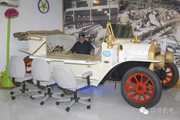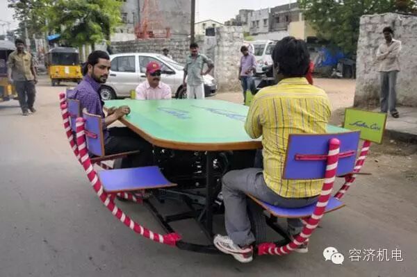 亚达夫设计的餐桌形汽车。他说:“年轻的时候,朋友们经常邀我去看电影,但大都被我拒绝。与电影院相比,汽修店对我的吸引力更大。从店里的维修工身上,我学会了很多东西。”
