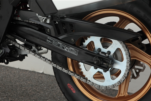 至于这款土豪金,则是宗申推出的RX3纪念版,性能当然是旗舰级别,拥有18极磁电机、可调式前减震、USB仪表装饰盖、前后碟刹、倒置前减、后中央减震、全地形真空胎、LED大灯、GPS防盗等等。
