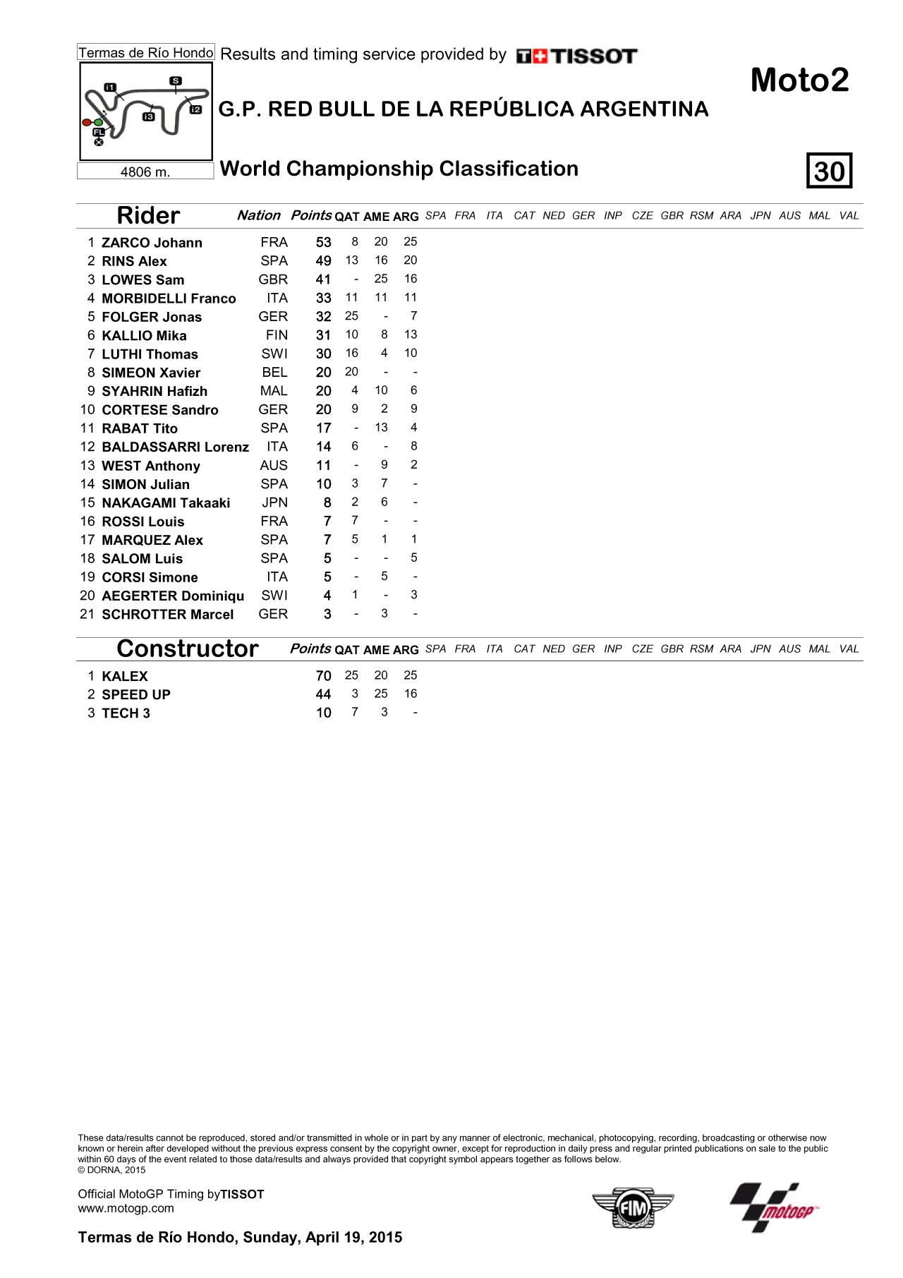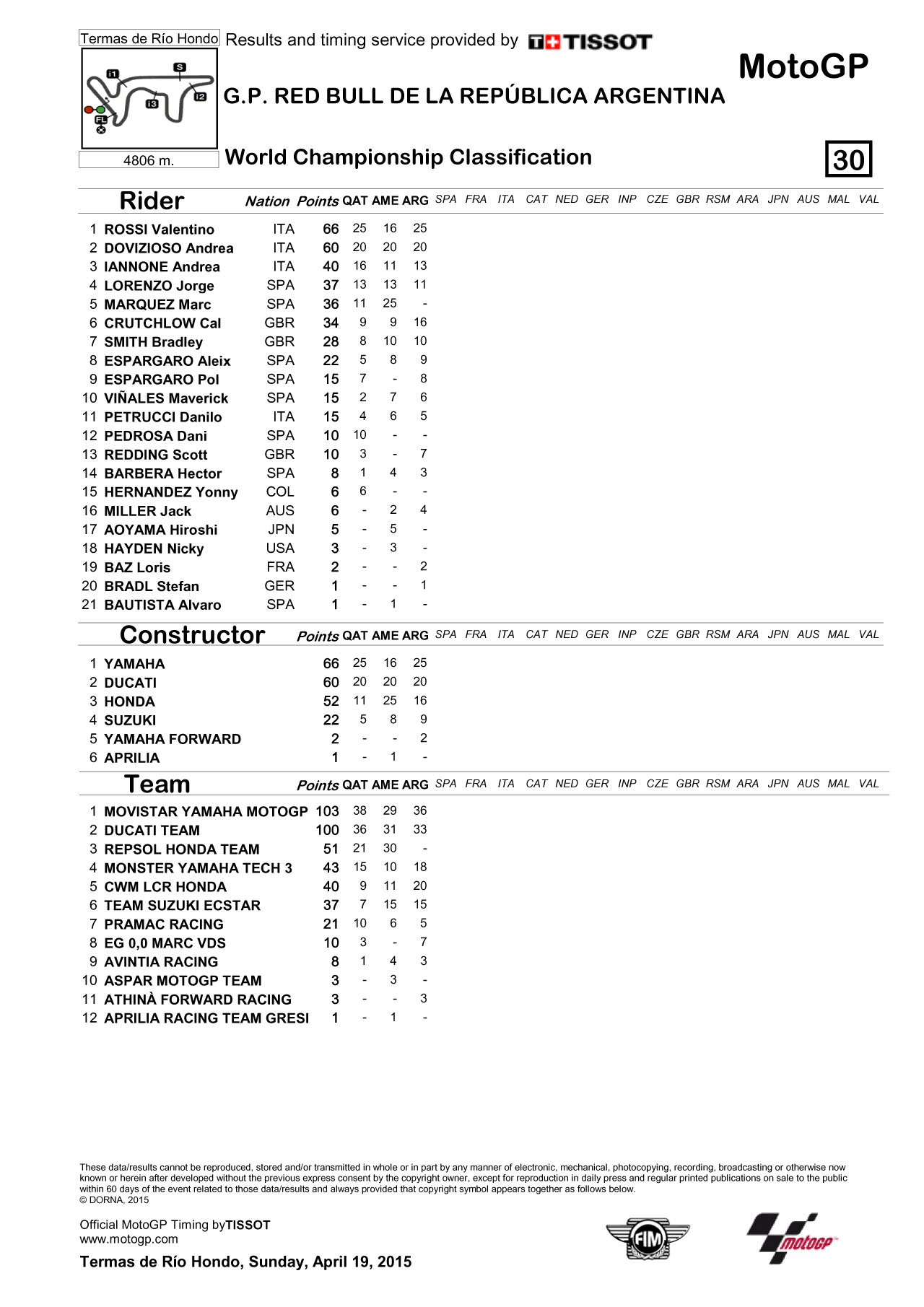 核心提示:下图:MotoGP 级别成绩下图:MotoGP 级别 积分榜下图:Moto2 级别 成绩下图:Moto2 级别 积分榜下图:Moto3 级别 成绩下图:Moto