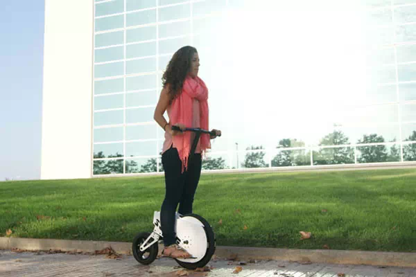 别看它只有一个轮胎,它的车身配备了自动平衡系统。