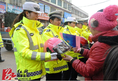 因此,交警在春运第一天,走进偏远农村,开展“送平安送头盔”活动,联合当地商家免费赠送1000顶摩托车头盔给驾驶员,并号召村民向家人宣讲交通安全知识,共同安度祥和团圆节。