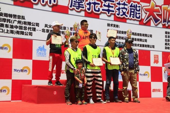 在开幕式上,多位领导致辞 :东方时尚驾驶学校股份有限公司副总经理吴陆华、赵晨光,北京市公安局特警总队支队长王建春,中国汽车工业协会摩托车分会秘书长李彬,北京市汽车摩托车运动协会副秘书长杨巍。各位领导对摩托车手们踊跃参与安全驾驶方面的活动表示欢迎,对目前国内摩托车的驾驶方面存在的问题和正确做法予以指导,并希望各位车手取得好成绩,预祝本届活动能够圆满成功。