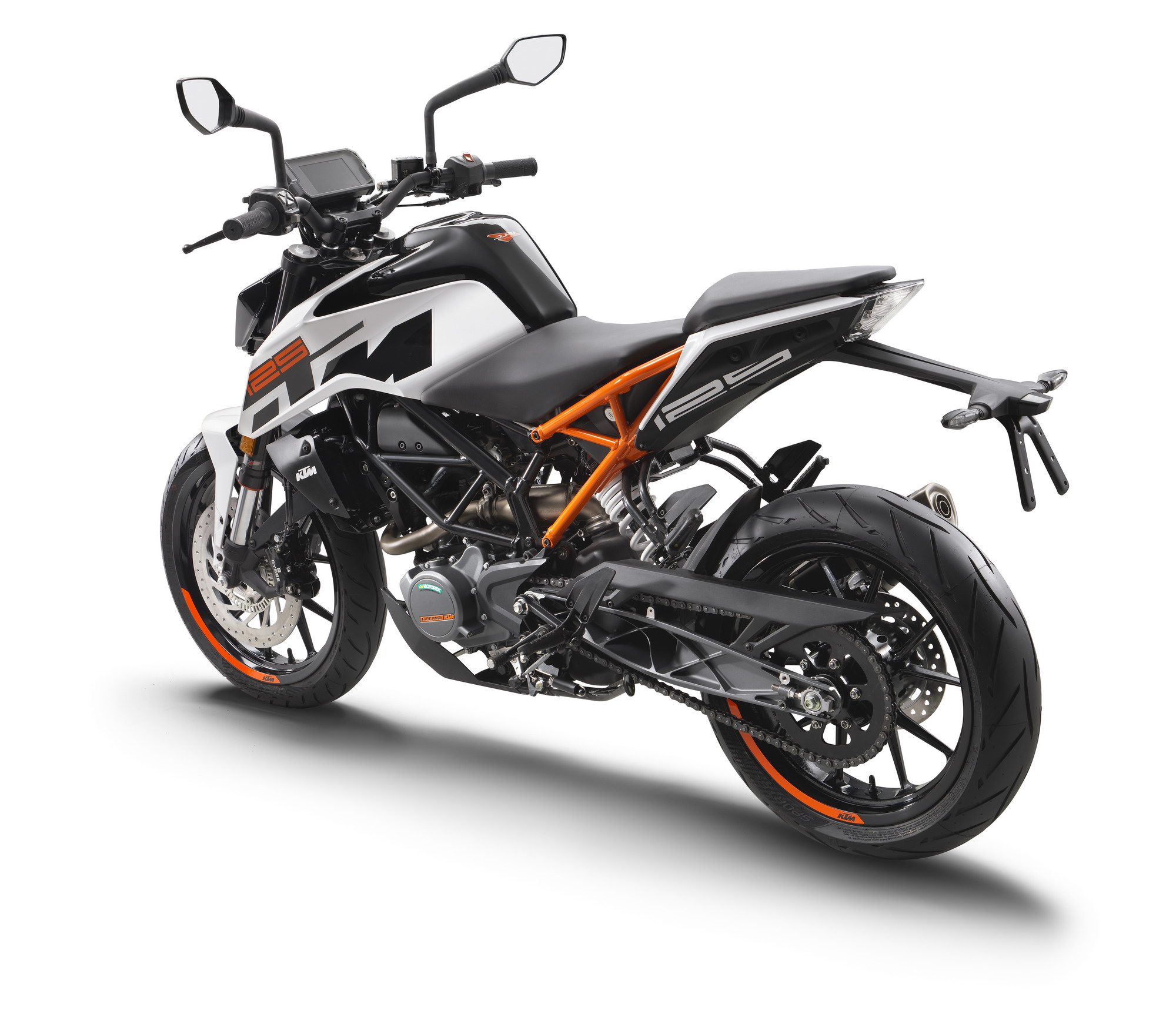 新的 2017' Duke 125 搭载一副与第一代相同型式的水冷单汽缸、DOHC 四汽阀发动机,排汽量 124.7 cc,配备了平衡轴、新的三元催化装置,符合欧四的排放标准,最大动力输出为 15 匹。新车使用一个新的、更显锋利的外观造型,“ 分裂式 ” LED 大灯的家族设计。经过重新设计的钢管式车架,后尾樑采用了螺丝固定的形式(现行款采用焊接的形式),排汽管也从现行款的中置设计改为新的右方伸出。全新的 TFT 液晶式全彩色仪表板,升级版的 WP 倒立前叉,且标配了 ABS 防锁死制动系统。