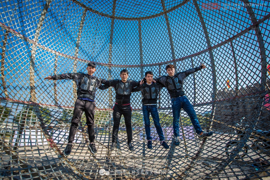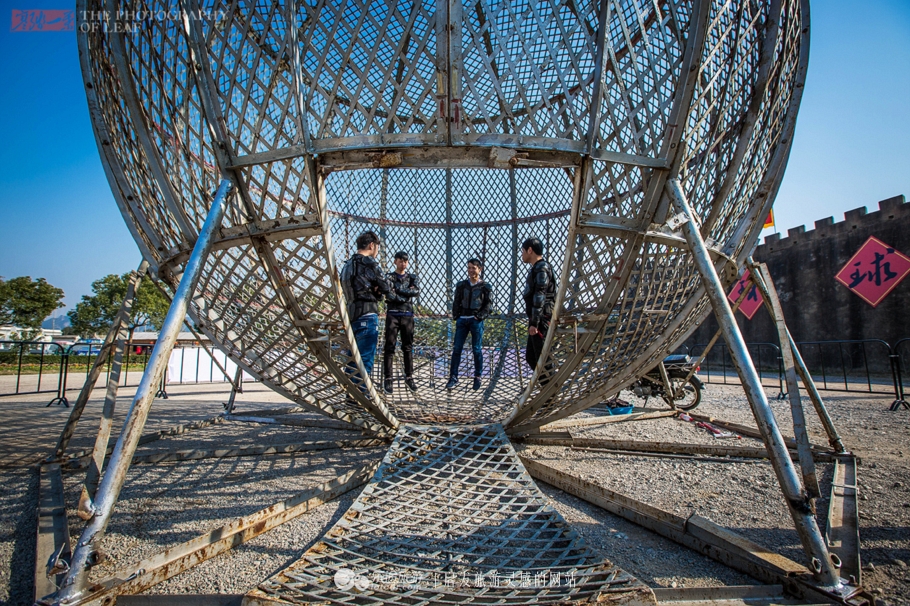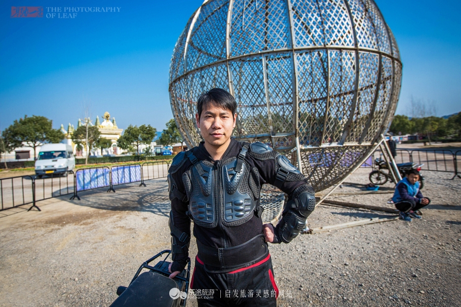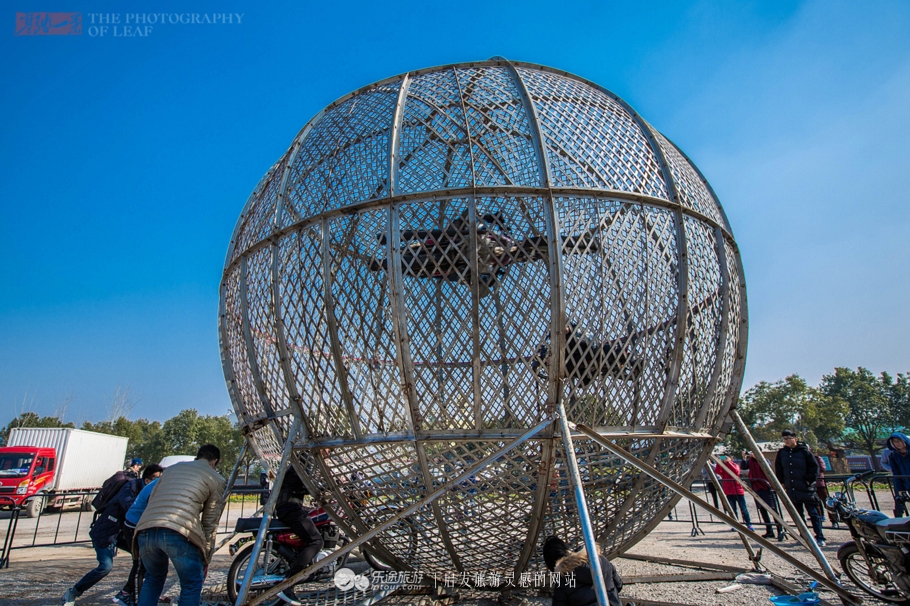 五位来自全国各地的勇敢小伙,驾驶着他们的摩托,在直径6米左右的钢球内展开一场生死时速。做出360度旋转、90度飞行、交叉穿越等系列高难度动作。这是浙江象山影视城2017春节特有的表演节目,当我在现场看到这样的表演时,震撼程度远远超越一切视频与图片效果。