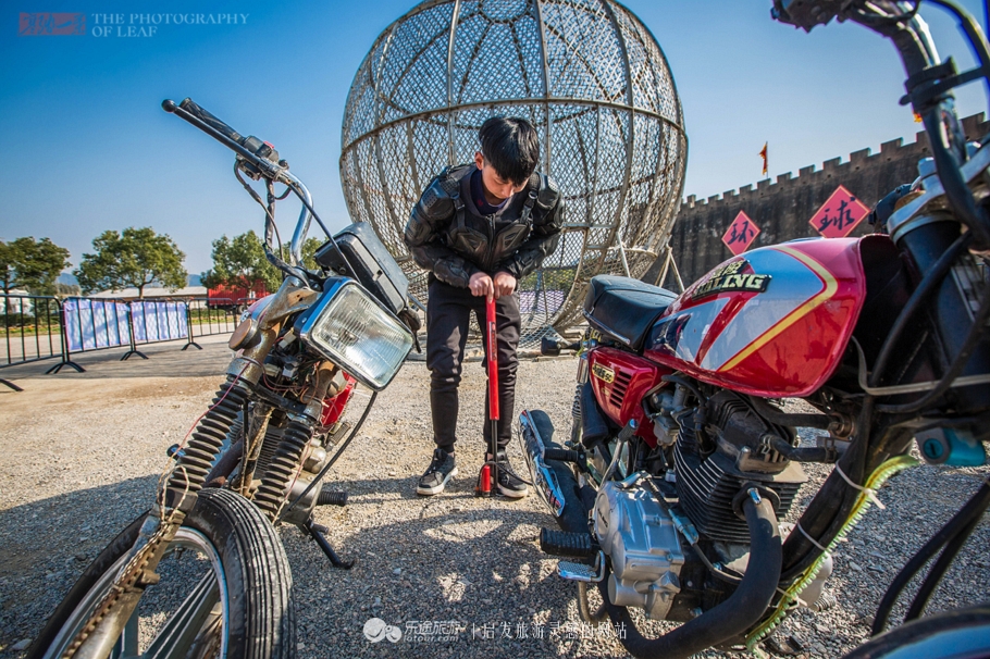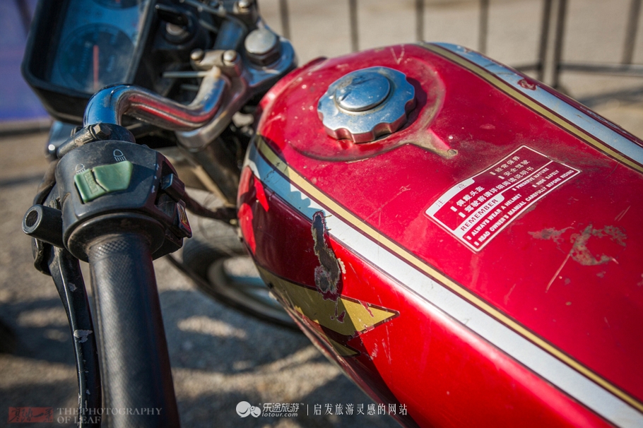 成曾辉开的就是这辆国产的普通“嘉陵”摩托,和我们平时马路上行驶的一模一样,据说售价3000多人民币。看着这伤痕累累的车子,我的脑海里一下子蹦出一大堆问题:“你们开这个车是不是危险系数太高了些?这车少说有个七八年了吧?这车上的伤都是平时训练和表演时留下的吗?你们平时不表演时是不是作为代步工具......"