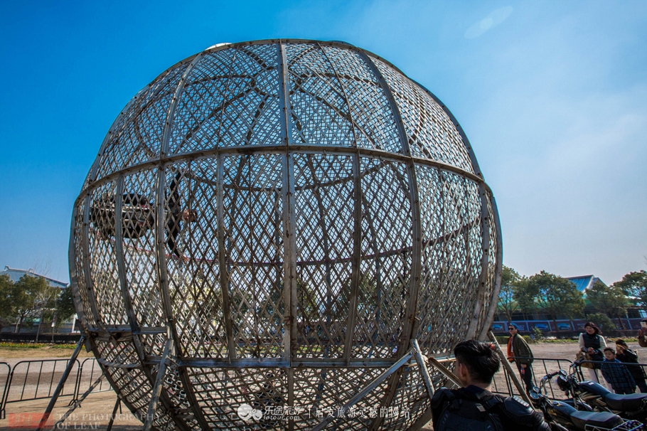 看我有些疑惑时,成曾辉主动提出要给我单独表演下,正好我也可以进到这个直径6米的钢球内感受下。走进这个用无数钢网焊接而成的钢球,第一感觉有些压抑,感觉都没有让人可以站稳脚的地方,我随便看了下就退出了钢球。