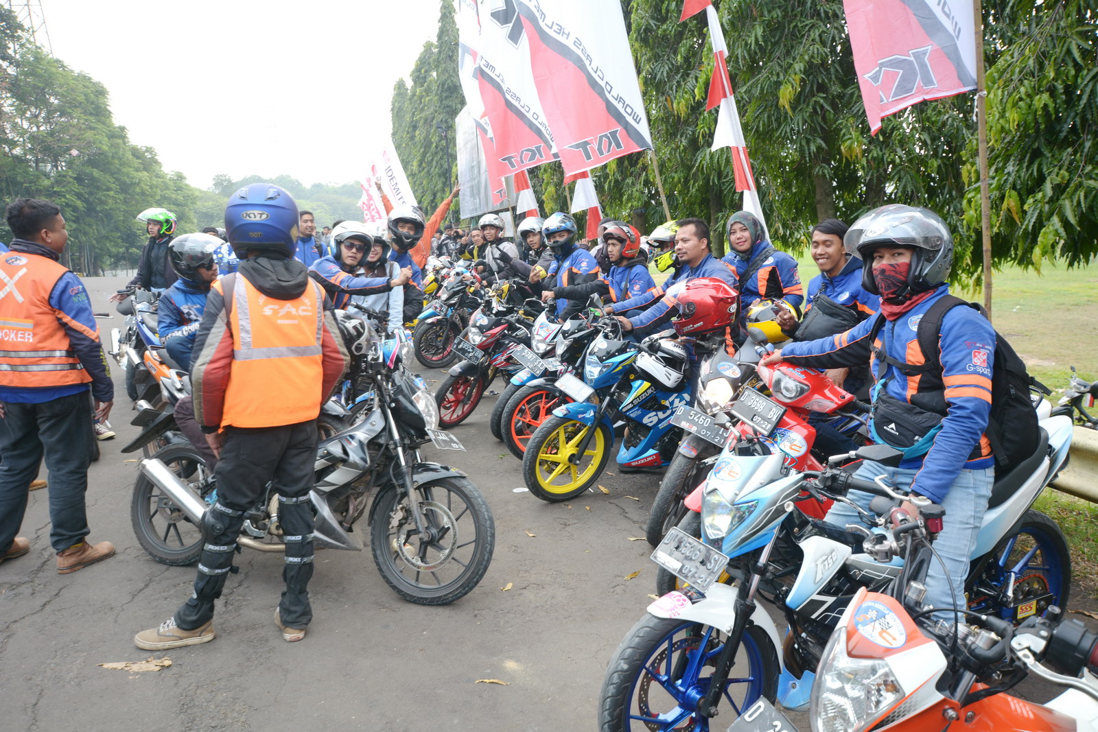 亚洲公路锦标赛印尼站,各地的爱好者骑着自己的车,奔赴雅加达附近的仙图赛车场。赛车场的外围,赛会早就做好了准备,把停车场划好了区域,以迎接来自各地的俱乐部、爱好者,好让他们对号入座。
