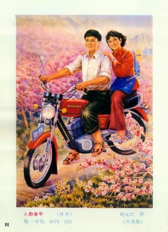 核心提示:改革开发之初的宣传画里面、赋予的摩托车角色,下面的图片来自公开的报道,主题分别是:回娘家,摩托女郎,人勤春早,喜讯传万家