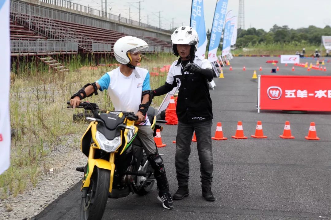 在进阶操控训练的同时,五羊-本田还安排了专业的场地越野车手罗振清作为教练,为有兴趣的用户进行猛鸷190非铺装路面体验教学。该环节旨在针对爱好摩旅的用户,在经过烂路或非铺装路面时,能够掌握基本的驾驶技巧,尽最大可能避免危险发生。这样周全和用心的环节设计,也获得了现场五羊-本田用户们的广泛好评!