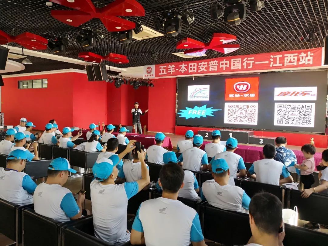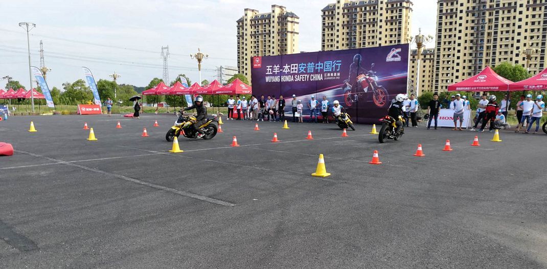 2018年8月18日~19日,五羊-本田安普中国行江西站活动在位于江西省南昌市湾里区的江西禹港国际卡丁车馆拉开帷幕,这也是今年五羊-本田安普中国行的第五站。本站活动继续由《摩托车》杂志资深培训教官大培子领衔的专业培训团队执教,但与前几站不同的是,江西五羊-本田商家和用户的热情空前高涨,报名人数一再突破预期,原本一天的培训被扩充为两天。不仅规模更大,本站的培训内容在基础安普培训之外,还增加了进阶操控强化训练和场地障碍赛等新环节,目的就是为了让热情的江西摩友们满载而归!