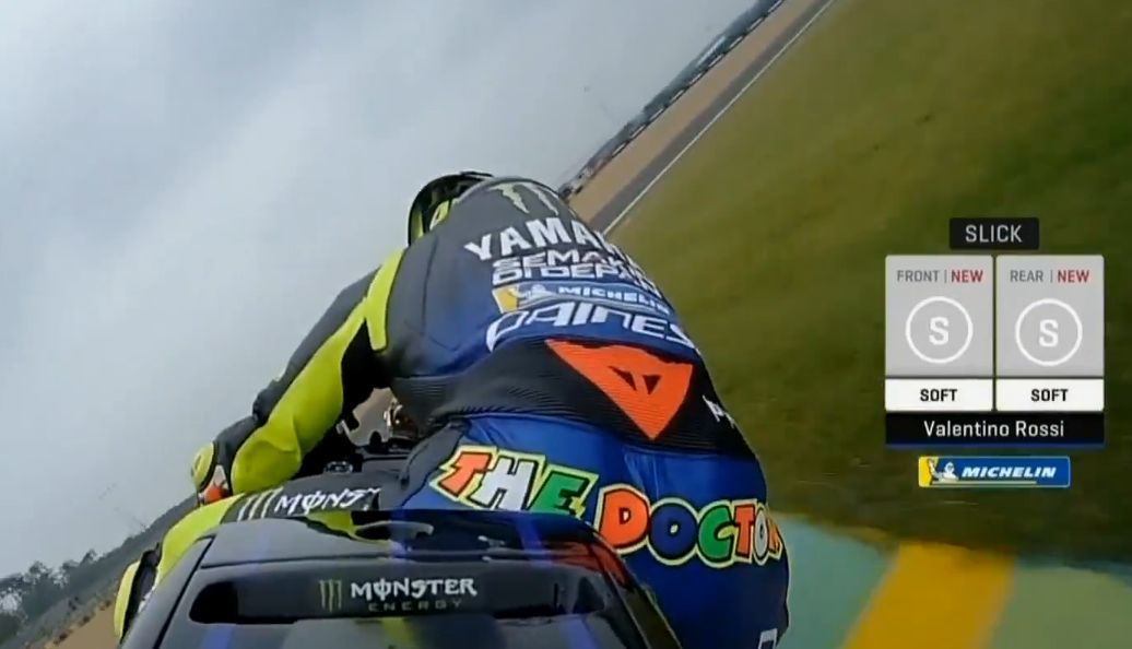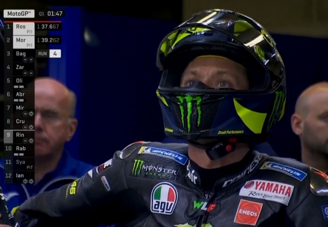 此前本田因为掉链子问题困扰了小马和洛伦佐,入如今这个问题抛给了雅马哈,罗西在FP1的时候链子直接断了,看来掉链子这事也传染,罗西受此影响只能从Q1起跑。要说罗大爷真不是一般人,Q1湿地的情况下别人都老老实实用雨胎,就罗大爷一人用光头胎出去跑,别说还跑挺快,两圈就拿到第1。其他车手一看老大爷都敢这么玩,也纷纷进Pit换干胎。