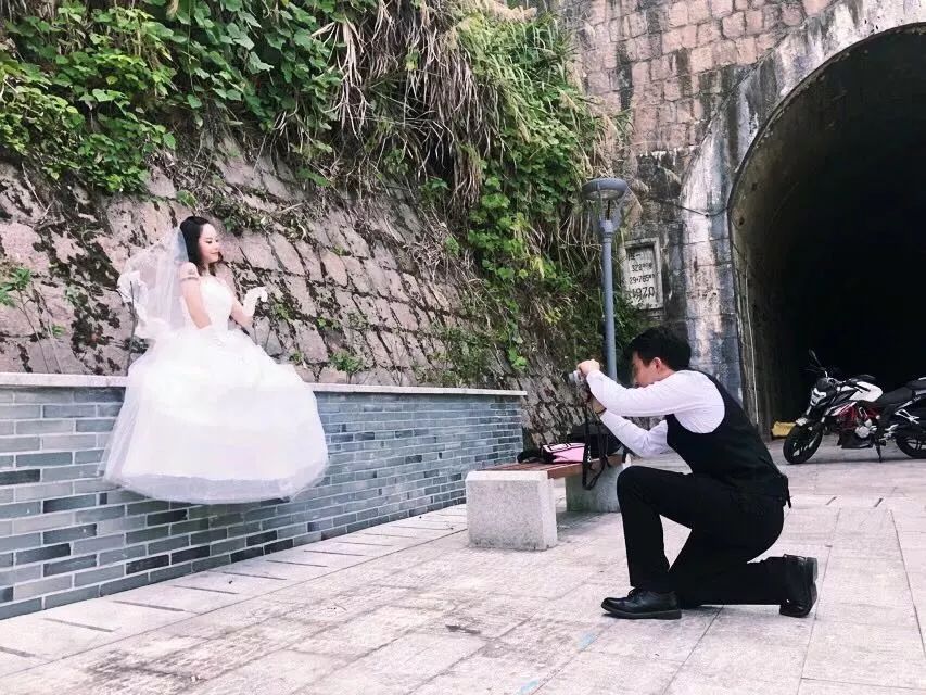 学生时期觉得最浪漫的就是“陪你,从校服到婚纱”,虽然不是学生时期的校服,可人还是从前的人,也算圆了少女时期的梦了!