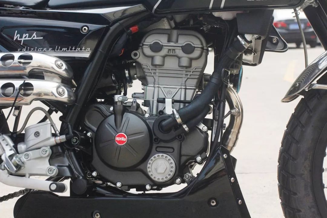 CR150的动力搭载一台单杠水冷4气门150cc发动机,12:1的高压缩比,让发动机可爆发发出的 功率高达13.3Kw/9750rpm,峰值扭矩达14Nm/7500,从数据上看还是一款高转小怪兽,最高车速为110km/h,搭配马瑞利电喷系统,让这款车的排放满足国IV标准要求。