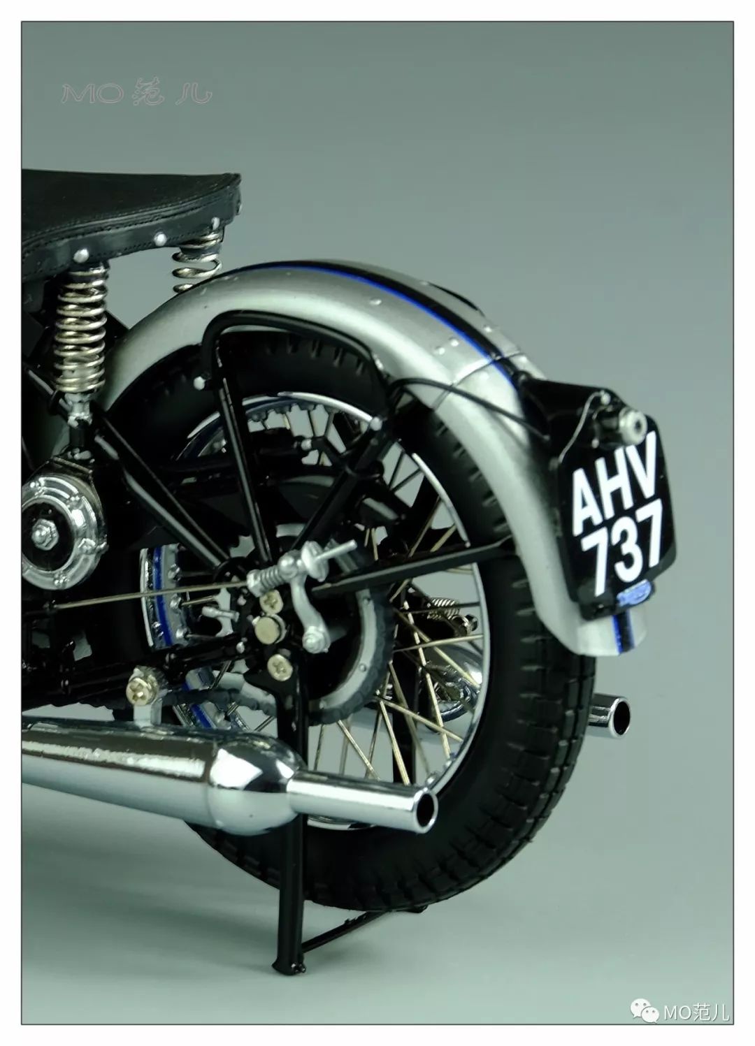 后轮依然没有减振器,骑手只能靠着单人座椅下面的两根粗壮的大弹簧来对抗复杂颠簸的路况,呃~~~还有他个人坚强的革命意志……[抓狂][抓狂][抓狂]