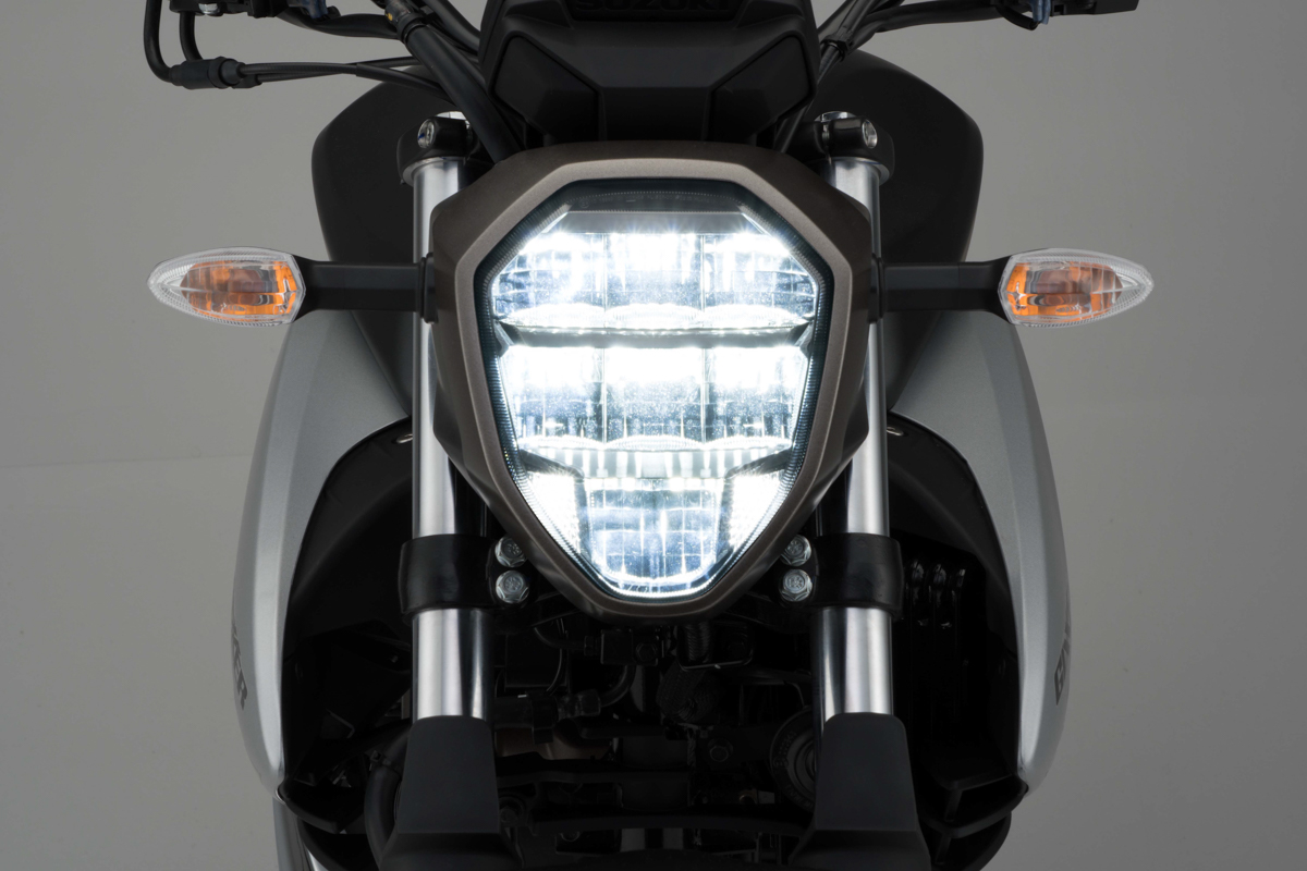 GIXXER 250同样采用LED灯组的头灯,造型更加方正更接近街车的设定。同时这两辆车的前后灯具都采用LED灯组,节能且提高夜间行车安全。