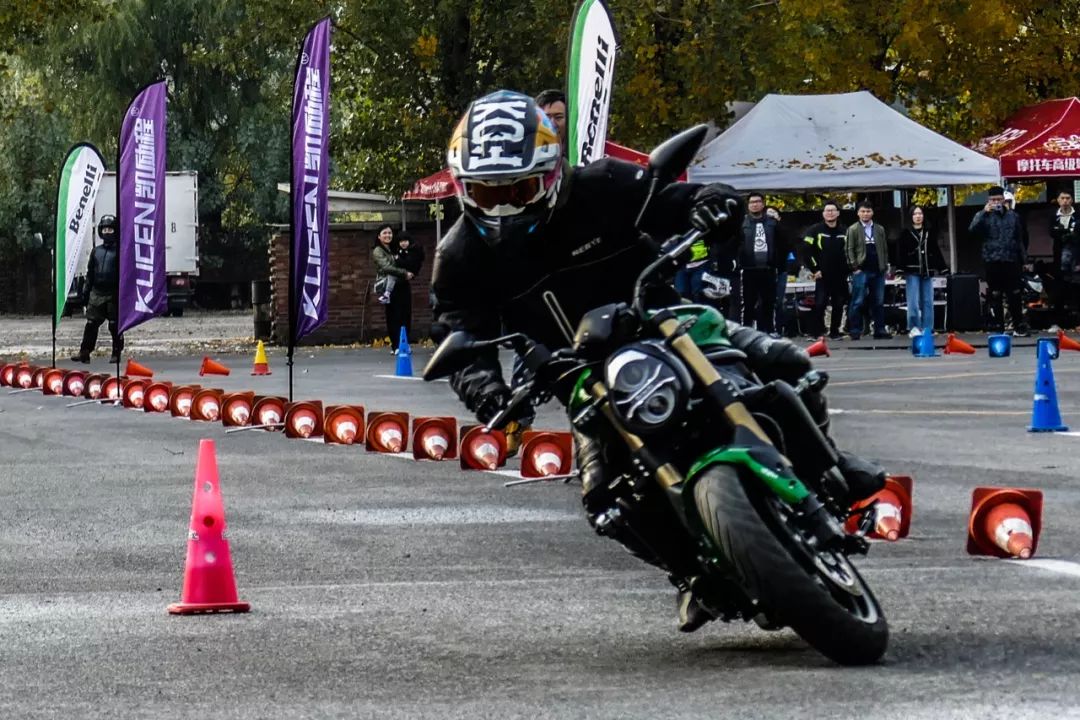 简单试驾过后由点控团队的培训师进行现场演示,他们采用的是同倾骑姿,双腿夹紧油箱,配合细腻的油门控制、视线以及大量金卡纳骑行方式。