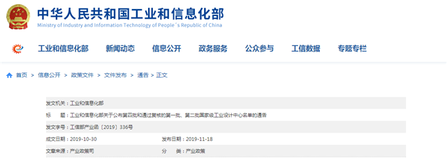 据了解,国家级工业设计中心是经国家工业和信息化部认定,工业设计创新能力强、特色鲜明、管理规范、业绩突出,发展水平居全国先进地位的企业工业设计中心或工业设计企业,代表国家对企业工业设计中心的最高认可。