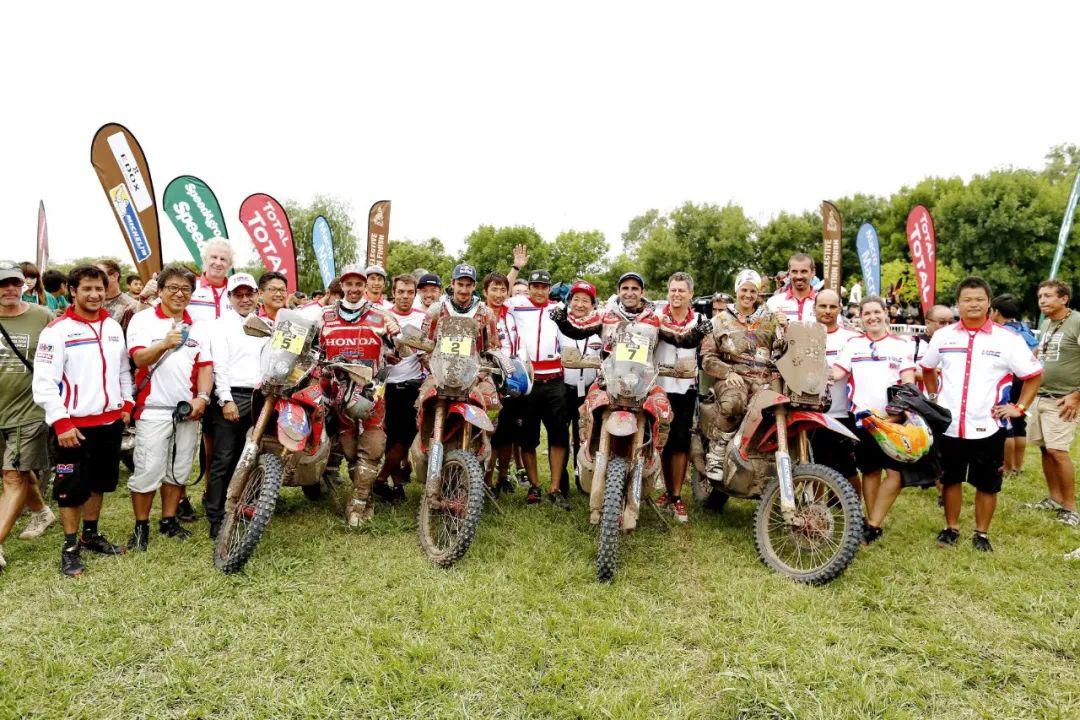 下图:2015' 达喀尔拉力赛上的 HRC 工厂车队(资料图片)。