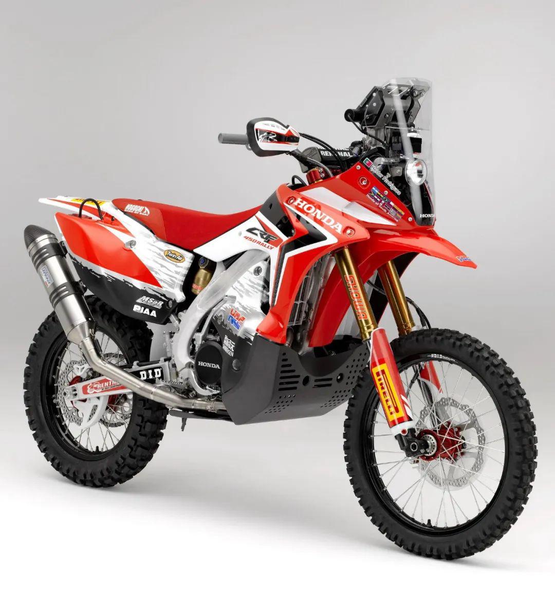 下面的图片,2012 年十月,HRC 发布了以 CRF450X 耐力越野赛车为基础修改而来的达喀尔拉力赛工厂赛车 CRF450 Rally(资料图片)。