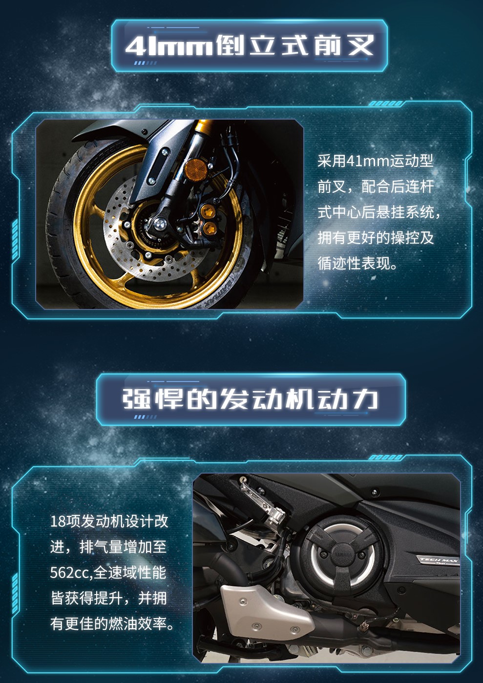 TMAX560与TMAX530最大的区别就是发动机排量上的增加,为了满足欧5排放标准,同时为了不降低发动机的输出,加大气缸排量是绝大部分厂家惯用的手法。