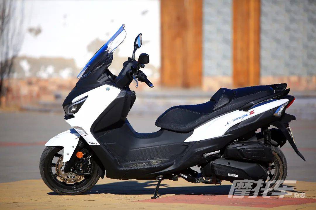 可以说骑乘的舒适性是 JOYMAX Z 300的一大亮点,新款 JOYMAX Z 300同样继承了这一优点。 JOYMAX Z 300前叉采用正立式前减震,后部为五段预载可调的双后减震。前后减震弹簧K值都偏小,反映到驾驶感受上就是偏“软”。在捏前刹时会有些沉头,在捏后制动时前减震也会有明显的压缩。减震阻尼设定适中,对小的颠簸滤震性较好。后减震采用了双线距弹簧,在双载的时候,随着荷重的加大仍然能够提供不错的支撑性,遇到颠簸也不容易发生减震到底的状况,单、双载情况下都有不错的减震舒适性,但并不太适合较为激烈的弯道驾驶。