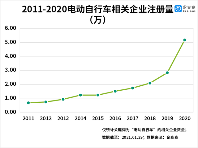 2011年以来的十年之间,电动自行车企业注册量逐年递增。