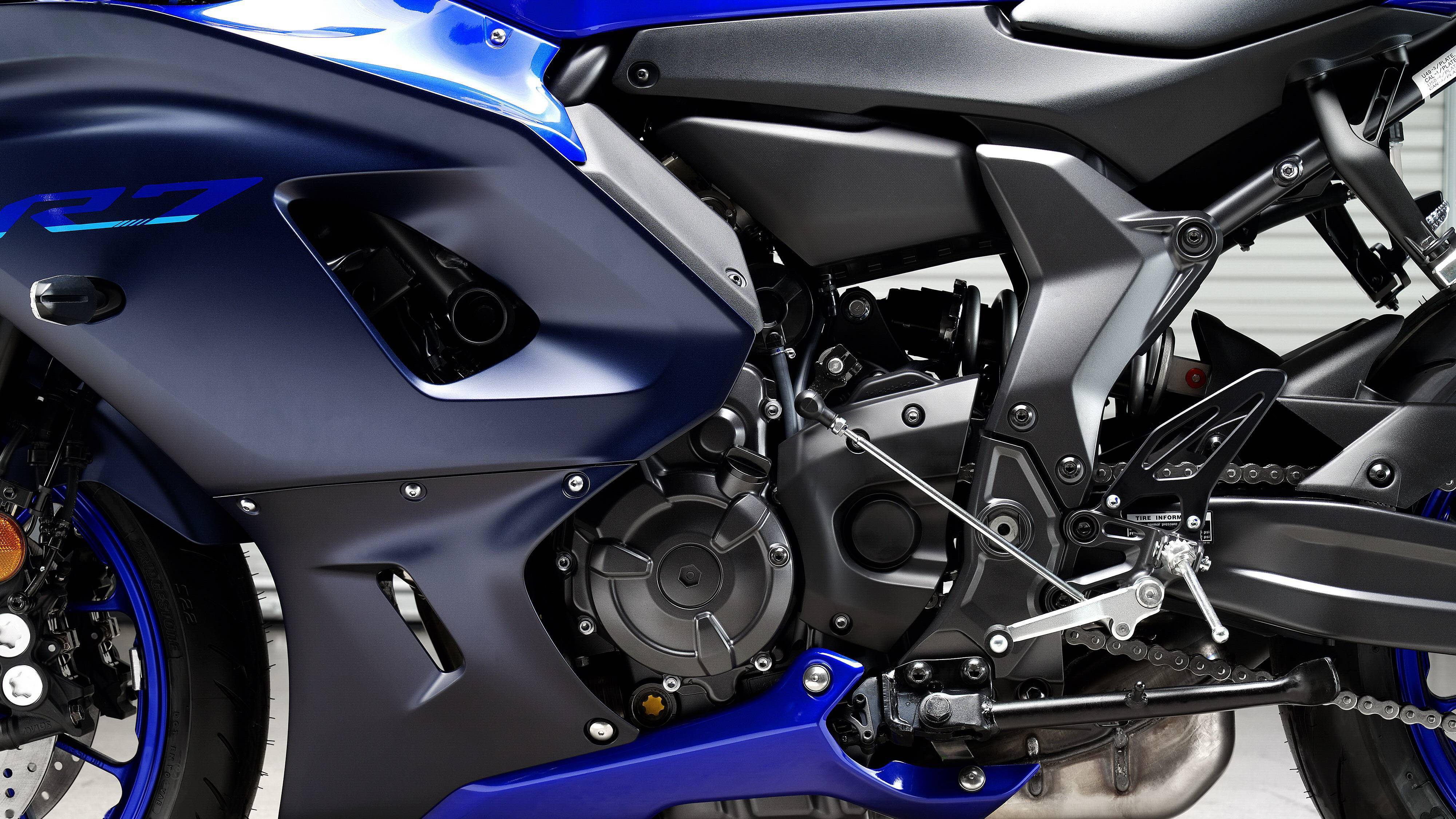 MT-07 所搭载的 CP2 发动机在 2013 年首次发布,采用 270 度点火的曲轴,提供了一个不均匀的点火顺序,从而在更广泛的转速范围内,产生强大而且线性的扭矩输出。应用到 R7 的 CP2 发动机,采用了新规格的 ECU 和经过优化的排气管,配备了滑动式离合器,可选装快速换档系统。