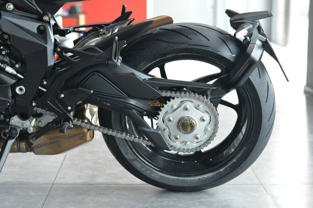 铝合金的单摇臂看上去略显单薄,但丝毫不影响单摇臂的逼格。轮胎规格为:前120/70 - ZR 17,后180/55 - ZR 17,搭配倍耐力Diablo Rosso III轮胎。