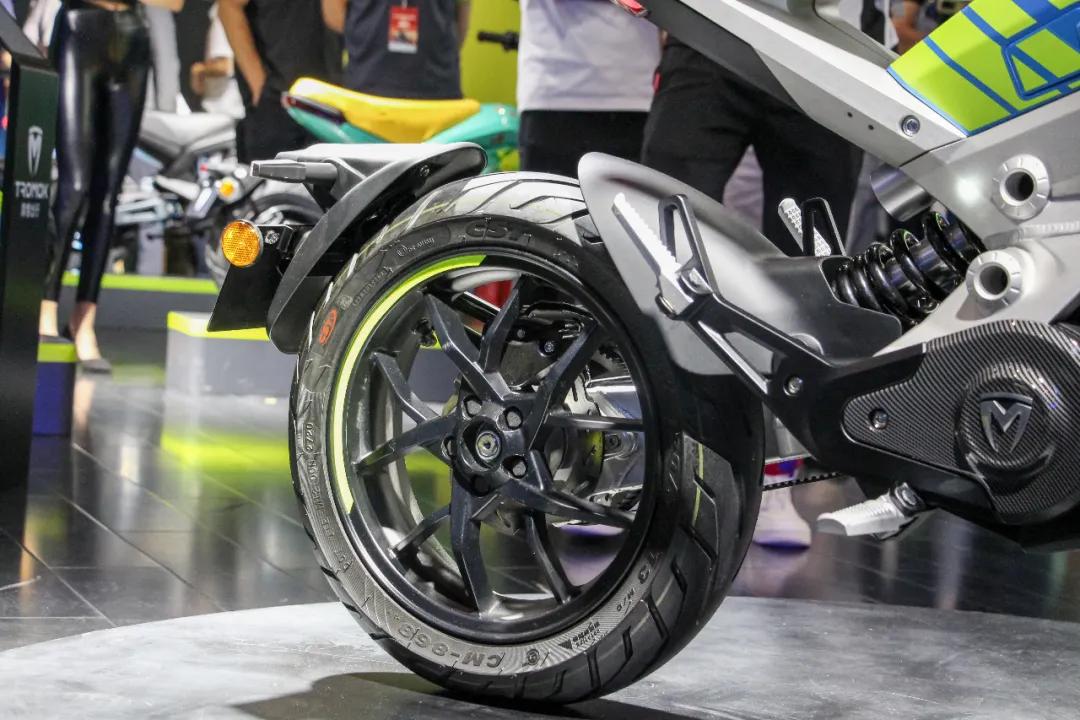 区别于国内传统电车采用的“大饼”电机,“悟”采用中置电机,首先是电机的散热性能更好了,其次对于传动比的改装更方便了,而且中置电机使得后轮簧下质量更轻,这是一些“性能”电车采用的做法,而且成本相较于“大饼”电机来说也更高,官方宣称零百加速仅需4.2s,这个成绩都可以赶超一些600cc级燃油摩托车了,这也是电车的优势之一!