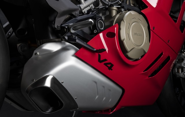 动力方面,1,103cc排量的Desmosedici Stradale 90° V4发动机,更新了新的油泵和润滑系统。排气管的出口直径变得更大,从而降低了排气背压并提高了性能。最大功率215.5hp/13,000rpm,比 老款增加了1.5hp,最大扭矩123.6Nm/10,000rpm,比老款小了0.4Nm。