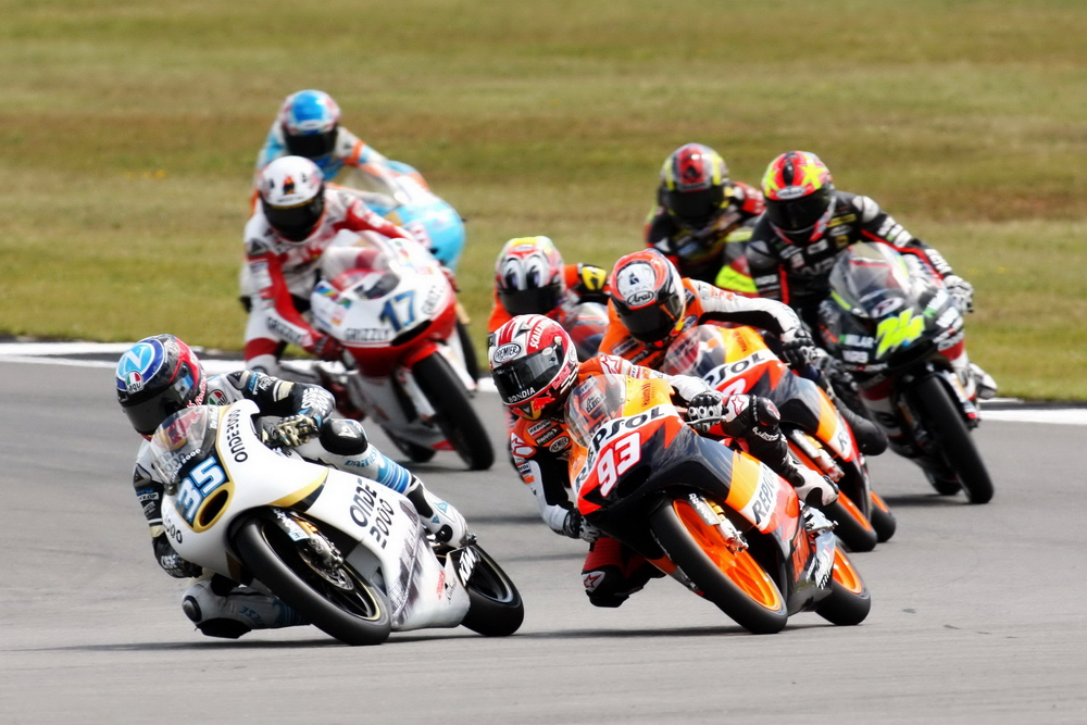 下面的图片,2008 年度 MotoGP 英国站,在 GP125 级别夺得第三名的马昆斯,这是他职业生涯首次登上颁奖台(资料图片)。在世界锦标赛的首次亮相,他最后拿到了年度的第十三名。
