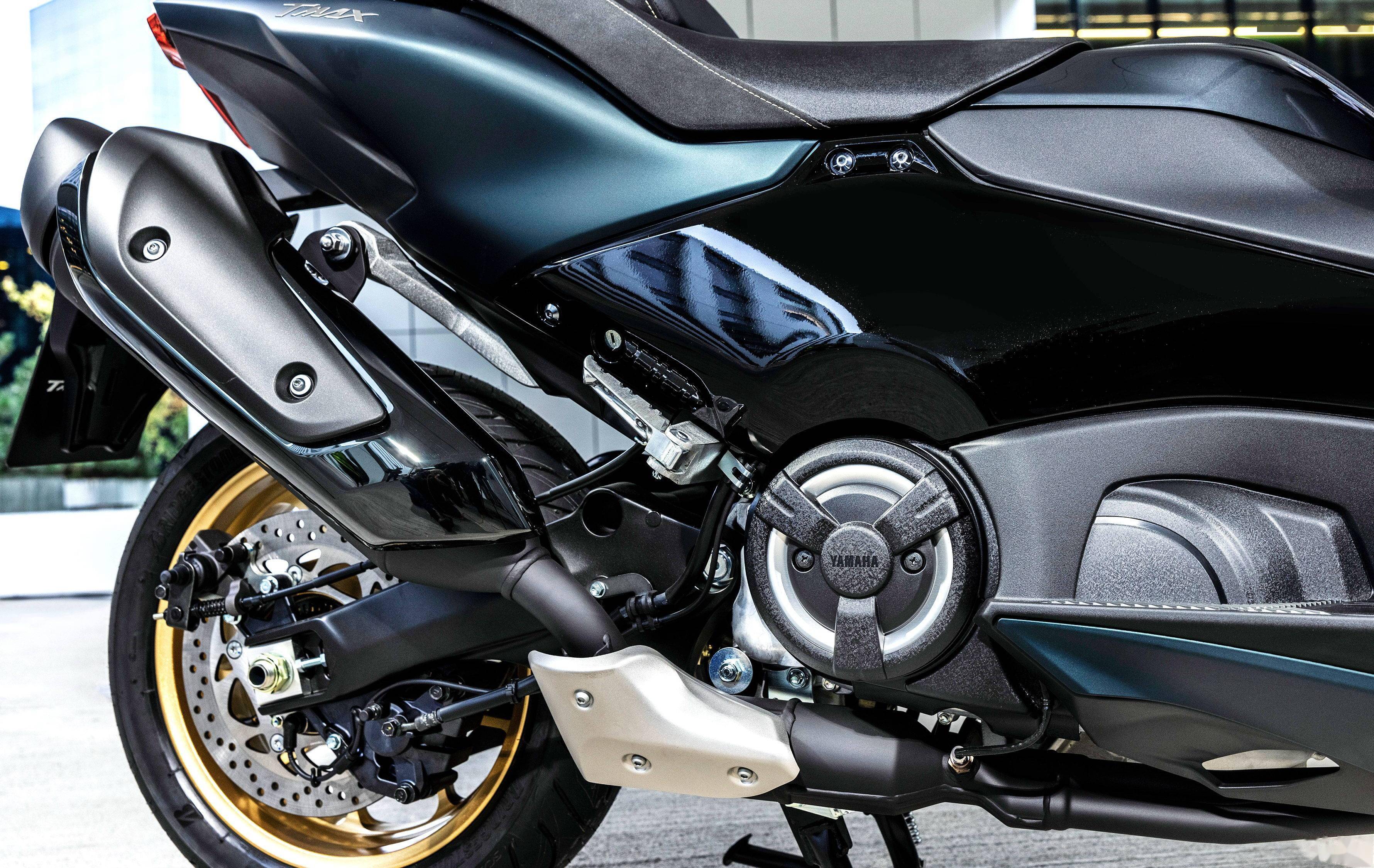 新一代的 TMAX 沿用了原有的水冷四冲程卧式直列两气缸的发动机,缸径、行程保持为 70 mm x 73 mm,排气量 562 cc,最大动力输出 35 kw,符合欧五排放标准。新车的动力装置与上一代车型相同、没有重大的变化,360 度点火的曲轴,水平对置、往复活塞式设计的平衡轴(“ 传统 ” 的平衡轴设计是旋转式的设计),卧式气缸组的布局从而大大降低发动机高度,是这副动力单元的特点所在。电控系统方面,配备了 D Mode 可选动力输出模式、牵引力控制系统。