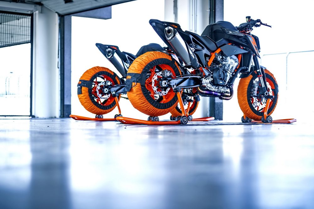 KTM 的中量级运动街车 890 Duke R 在 2019 年的十一月初首次发布,搭载一副直列两气缸]排气量 889 cc 的发动机,最大动力输出 89 kw(约 121 HP)。车体采用一副钢管式的车架,WP 配套的前后悬挂系统,Brembo 布博的制动系统,并配备了可选的动力输出模式、基于 6D 倾斜角度感应的牵引力控制系统和弯道 ABS 等电子装备。
