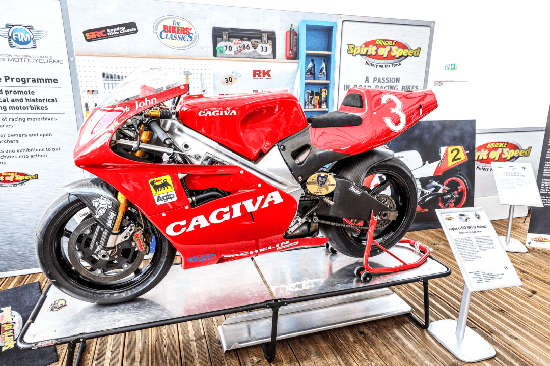 而现场展示的经典赛车,除了日本的四家制造商之外,意大利的 Bianchi、Cagiva 卡吉瓦、Benelli 贝纳利、Moto Guzzi 摩托固兹、Moto Morini 摩托莫里尼、MV 奥古斯塔,来自法国的 Linto,英国的 Norton 诺顿等也赫然在列。