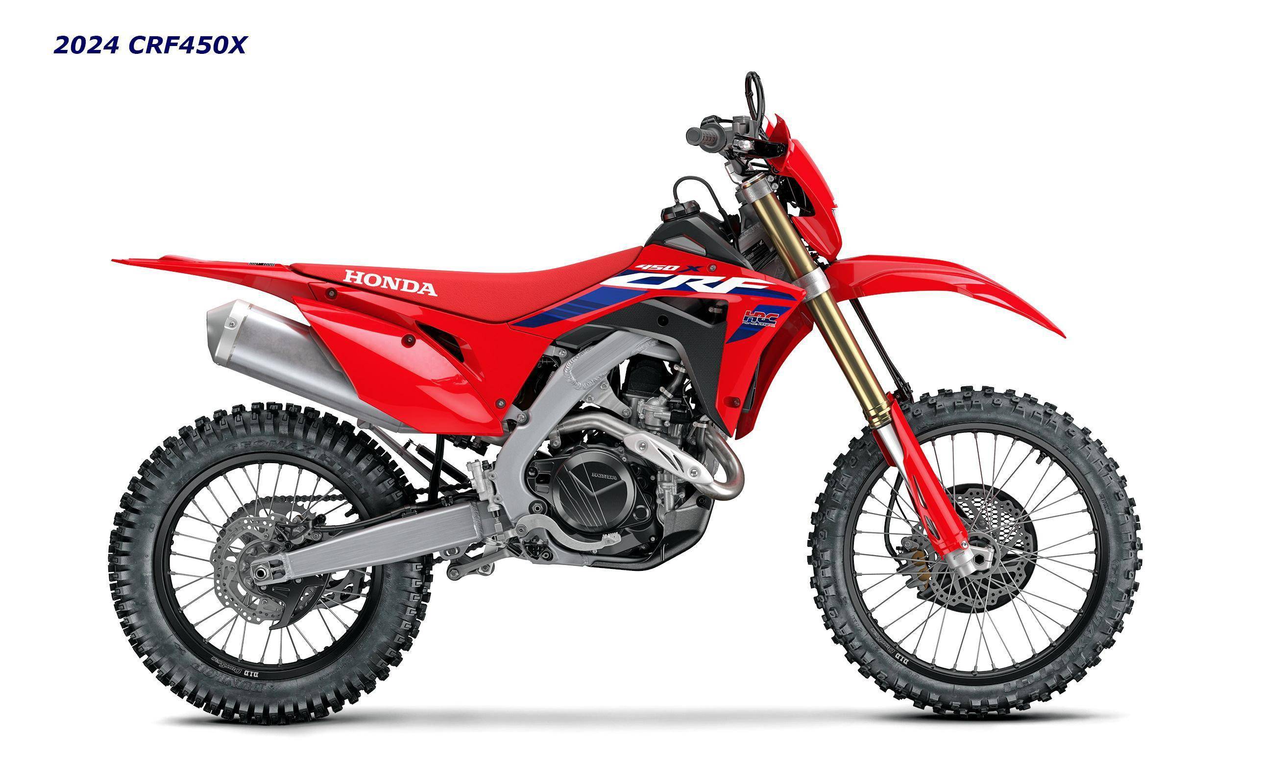 旗舰级的市售越野赛车 CRF450R 系列,2024 美国版主要的变化是维持了原有的机械配置,但换上了新的车体图案。整个系列包括了属于 Motocross 场地越野赛车的 CRF450R 标准型,基于 2022 规格修改而成、属于 “ 廉价版 ” 的 CRF450R-S,以及标配了大量改装件、接近于 AMA 工厂赛车规格的 CRF450RWE(WE 意为 Works Edition 工厂赛车版);此外还有属于 Enduro 耐力/林道越野的 CRF450X(配备了前大灯)和 CRF450RX。