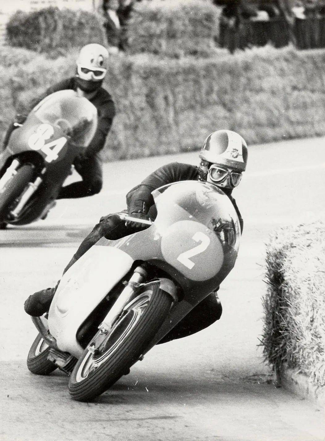 英雄佩宝剑,悍将驱烈马。1965年,23岁的阿戈作为奥古斯塔赛车队的正式选手,在世界GP赛场上登台亮相。在GP350中,阿戈驾驶技术和性能领先的并列三缸赛车,一路上叱咤风云、过关斩将,成绩一度领先,直到最后一站,才以一线之差,与冠军擦肩而过,屈居年度亚军!当年阿戈就双线作战,同时竞逐更加激烈的GP500,同样拿下了年度亚军!