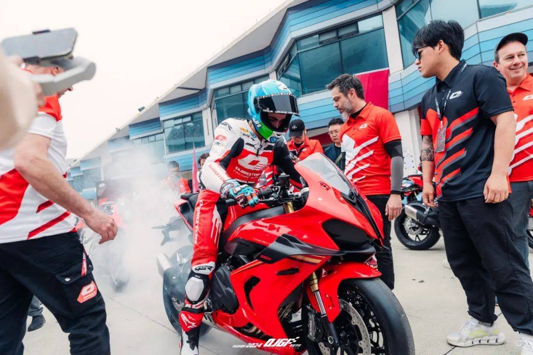 4月27日,QJ把WSBK车队请到了中国宁波,厂队车手拉斐尔.德罗萨更是在宁波赛道,与中国的赛车爱好者、赛车教练等亲密接触,并共同下赛道,来了一场表演赛。