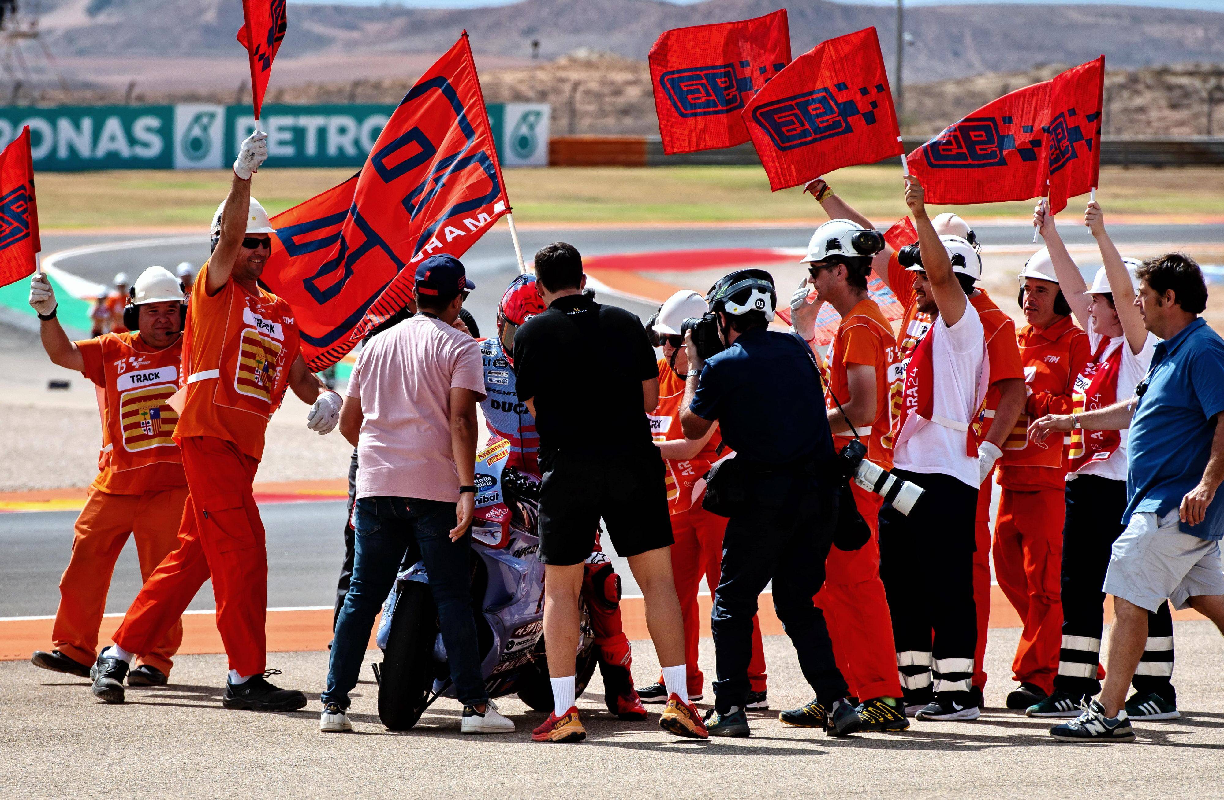 赛后,马昆斯表示,“ 我们需要享受这一刻:尽管这只是一场冲刺赛,但今天是庆祝的时候了。这是一场艰难的比赛,(也许)明天的正赛会更加艰难,尤其是在轮胎管理方面,但我们现在必须(为这样的表现而感到)高兴。这场胜利虽然很小,但它是我们所处的竞争力曲线里的一部分。”