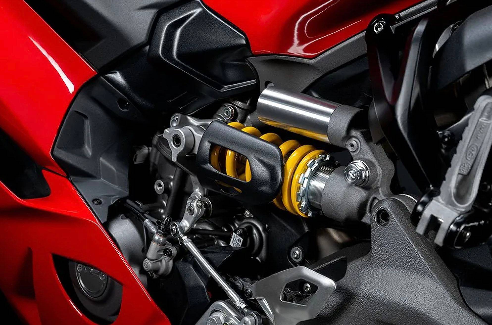 V2 的主车架采用单体式铸造铝合金,搭配副车架同样使用铝合金的结构,让它不仅轻而且硬。 而悬挂部分,V2 标配的是前 43mm 可调 Marzocchi 倒叉以及后 KYB 多连杆避震,而高规的 V2 S 则更进一步,选用 Ohlins 悬挂与前 43mm Ohlins NIX30 阻尼套件,让你在弯道里更有自信、屁股也更舒适。