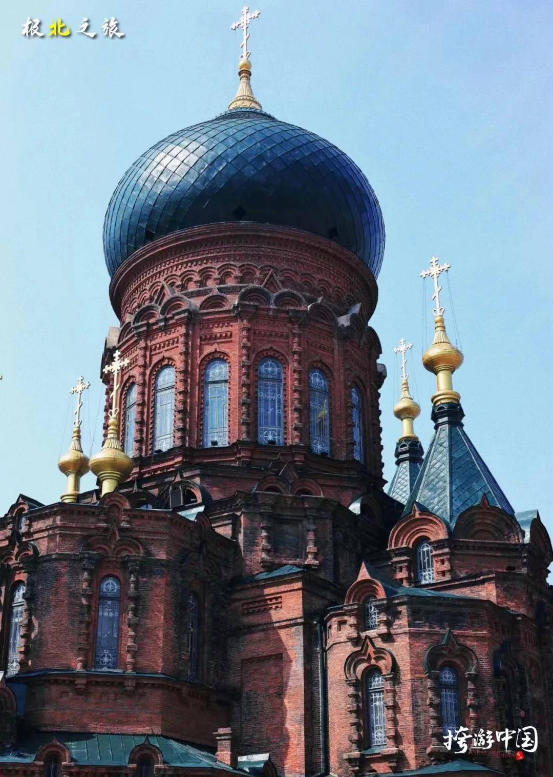 索菲亚大教堂是挎友们游览的重要景点之一,始建于1907年,建筑面积达721平方米,高度为35.37米,是中国保存最完美的拜占庭式建筑之一。最早是沙俄的随军教堂,如今则既是文物,又行使着建筑博物馆的功能。以墨绿色的“洋葱头”穹顶为中心,教堂平面呈十字形,“洋葱头”四翼各有一座尖顶钟楼。
