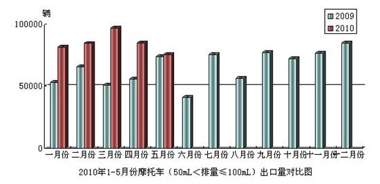 据海关提供出口统计数据显示,由中国汽车工业协会编辑整理,现将2010年5月份摩托车产品(50mL<排量≤100mL)出口情况分析如下: