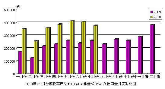 据海关提供出口统计数据显示,由中国汽车工业协会编辑整理,现将2010年7月份摩托车产品(100mL<排量≤125mL)出口情况分析如下: