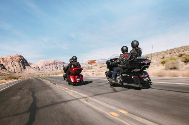 作为高规格的美式巡航,最新版“公路大师”武装了丰富的电子智能辅助装置,让骑行变得更安全、更舒适、更便利。当骑手在坡道上临时泊车时,可以开启驻车控制功能,此时制动系统能够自动维持3分钟液压,防止车轮滚动。当骑手遇到紧急情况猛烈制动时,电子联合制动系统会基于骑手输入的制动压力,自动优化分配给前后制动的液压,从而获得更加平稳、安全、高效的制动效果。盲点警告、尾部警告在监测到有后方车辆进入盲点区域或跟随太近时,会通过显示屏以及安装在后视镜上的警示灯,来提醒骑手关注。追尾警告则在监测到后方车辆跟随太近、可能发生追尾风险时,通过自动点亮尾灯警示后方车辆。智能倾斜技术能够基于摩托车的倾斜角度,来优化防抱死制动系统和牵引力控制系统的效能,具备动态牵引力控制、过弯控制和阻力矩控制功能。