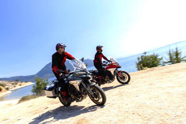 此外,拉力版还有着比其他版本更高、更宽的前风挡,容量达到 30 公升的油箱(其他版本的油箱容量为 22 公升),更高的 230 mm 离地间隙(标准版和 S 版的离地间隙为 220 mm),更宽的脚踏板,并换装了前 19、后 17 英寸直径的钢线式车轮(其他版本采用铝合金柱状的车轮)。