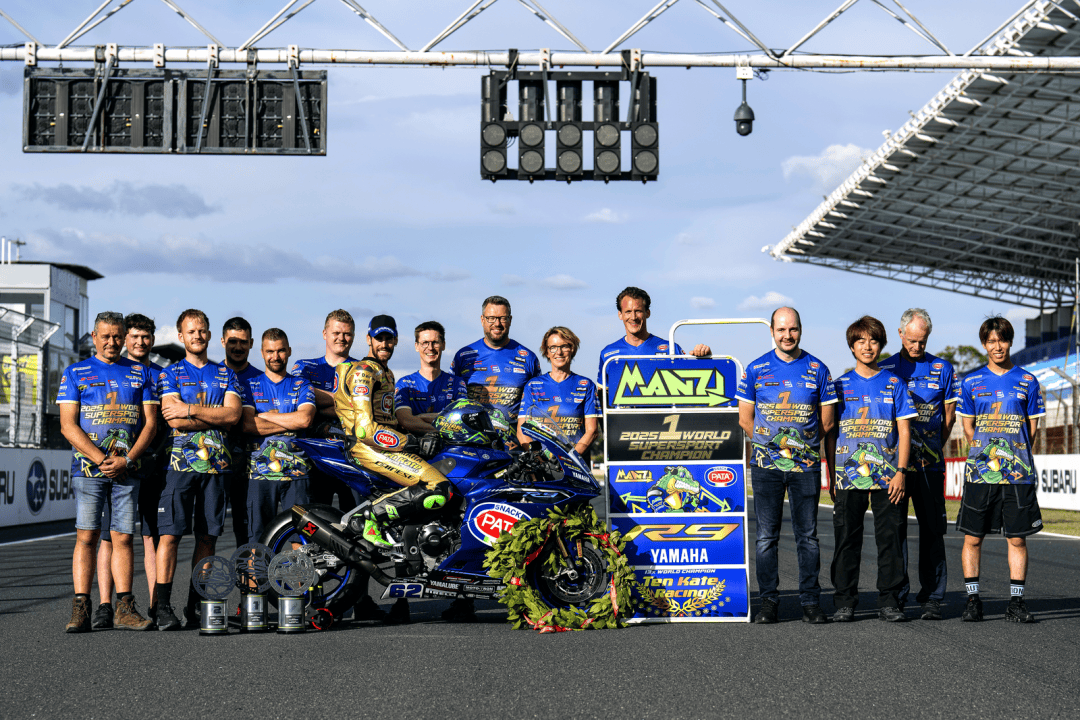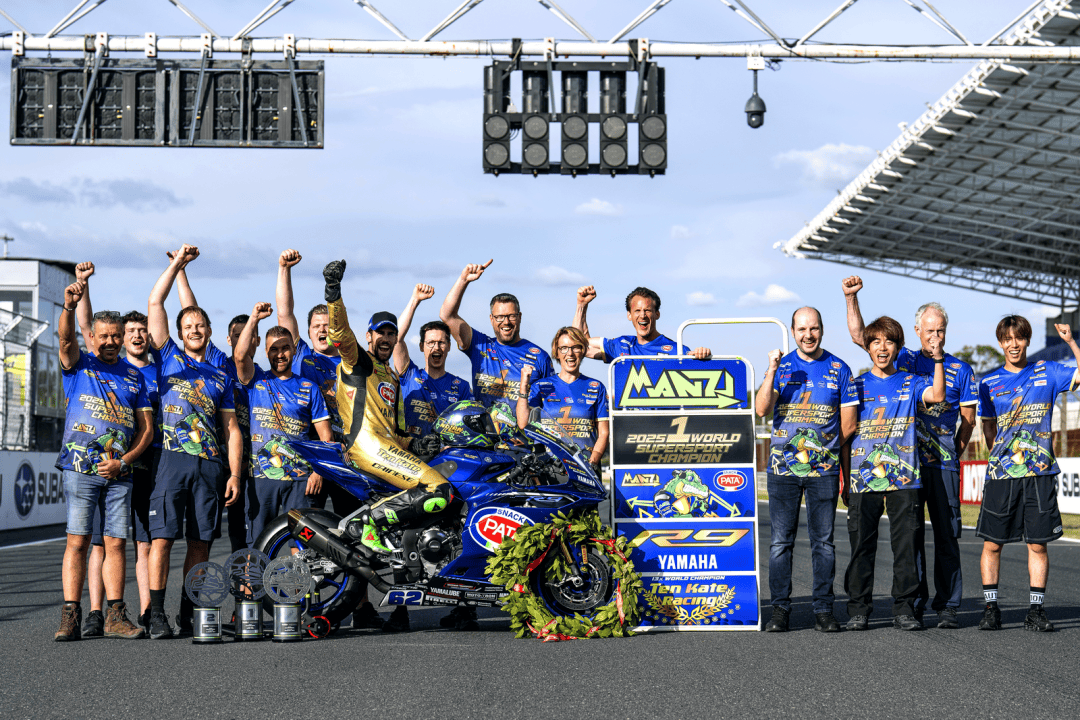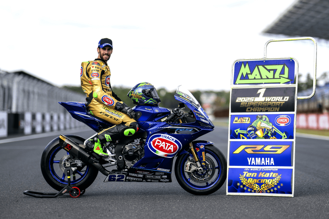 对于曼兹来说,2025 赛季称得上是一段非凡的旅程:以全新的赛车亮相,在今年已经结束的十一个分站比赛里,拿下十个冠军、累计十八次登上颁奖台,并以大幅领先的积分优势夺冠,从而结束了自己在 WorldSSP 过去两个赛季、都与世界冠军头衔擦身而过的历史。此外,曼兹的夺冠,也让 Yamaha 在这一级别拿到了第十次的车手世界冠军。