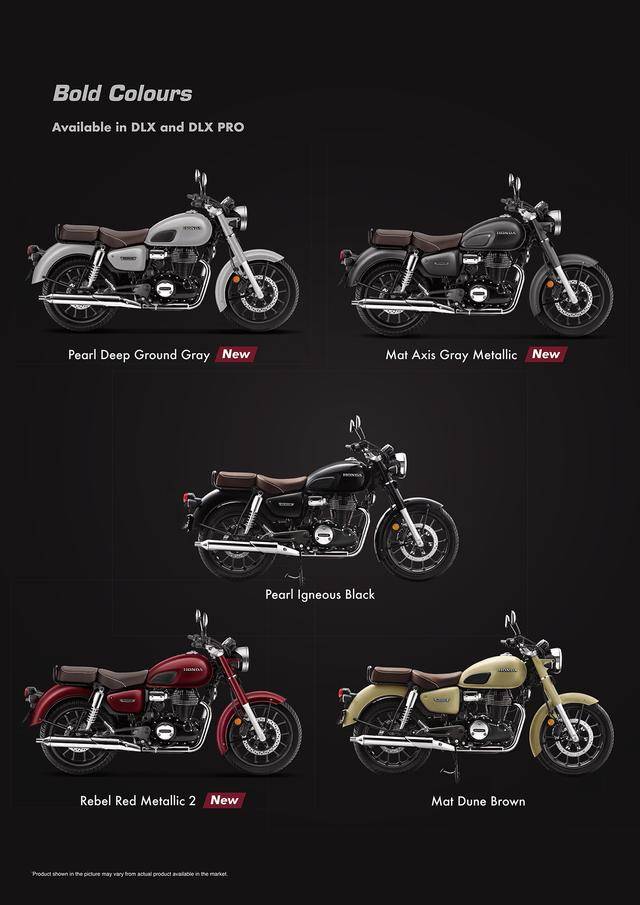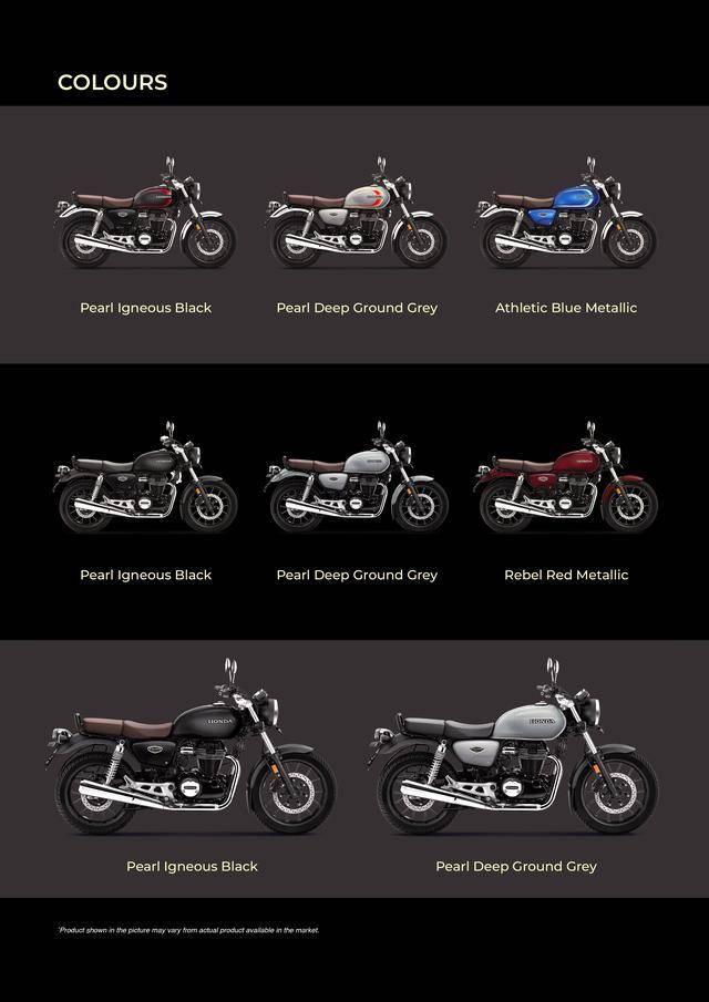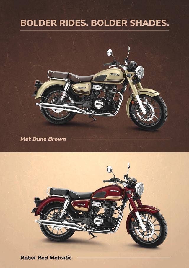 下面的图片,依次为印度市场的 CB350 基本型、CB350C、最新的 CB350C 特别版,以及 CB350RS、CB350 H'ness。