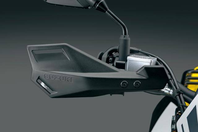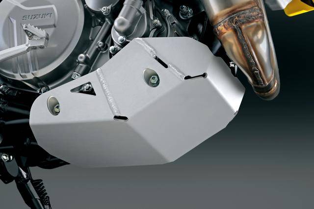 面向美国市场的 2026 DR-Z4S +、实际上就是在基本型的车体上,标配了更多的原厂改装组件/附件,强化了车身的保护功能升级而来:标配了位于发动机底部的铝合金制大型护罩,车把两端的护罩,以及前后刹车碟护罩。除了这些标配的组件之外,厂方同时提供一系列原厂改装组件供客户选购,而组件清单中,包括了小型的尾架,降低了高度、更薄的鞍座等。