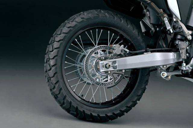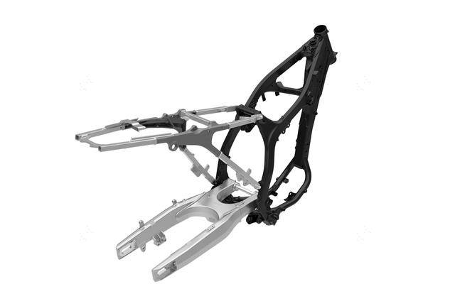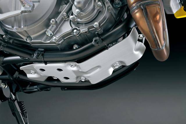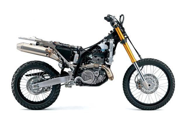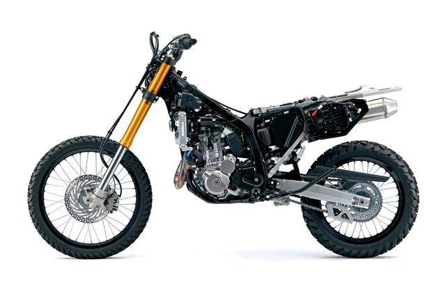 车体方面,采用一副全新开发的钢制双樑式车架;KYB 配套的悬挂系统,前面是行程为 280 mm 的倒立式前叉,单筒式后减震的行程为 296 mm;小型的数字式仪表板,前后碟式的制动系统,前 21、后 18 英寸直径的钢线式车轮,容量为 8.7 公升的油箱,920 mm 的鞍座高度,全车整备重量 151 公斤。