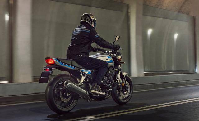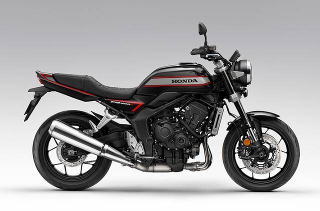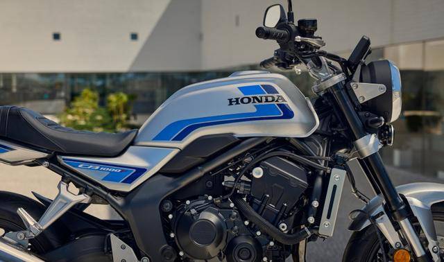 CB1000F的外观设计是对1980年代CB750F/CB900F的深度致敬。方正油箱、短促车尾构成简洁有力的轮廓线,外露的直列四缸发动机与镀铬件则强化了机械美学。但Honda并未止步于复刻经典:LED大灯以现代光效重塑圆形灯组,5英寸TFT仪表支持三种显示模式,隐藏式智能钥匙系统与Honda RoadSync手机互联功能,让科技感悄然融入复古框架。